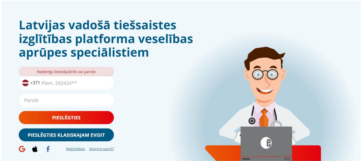 Pārbaudiet, vai ievadīts pareizs tālruņa numurs. Pārbaudiet, vai datoram nav uzlikts Caps Lock taustiņš, kā arī, vai izmantojat pareizo taustiņu garumzīmju un mīkstinājuma zīmju ievadīšanai. Gadījumā, ja joprojām neizdodas pieslēgties, mēģiniet atjaunot paroli.
